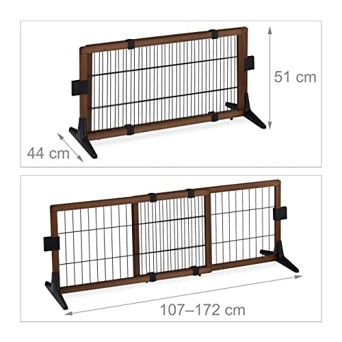 Relaxdays Cancelletto per Bambini, Barriera Allungabile per Cani e Neonati Recinzione Scale HxL: 51x107-172 cm, Marrone, 1 pz