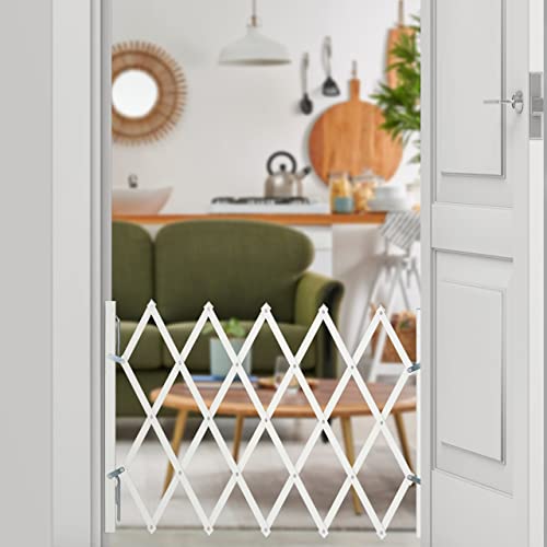 Relaxdays Cancelletto di Sicurezza per Cani, Barriera Porte e Scale, Allungabile 96 cm, Alto 48,5-60 cm, bambù, Bianco