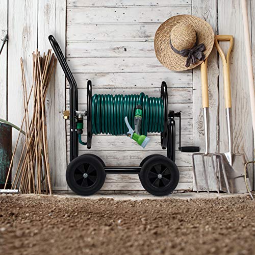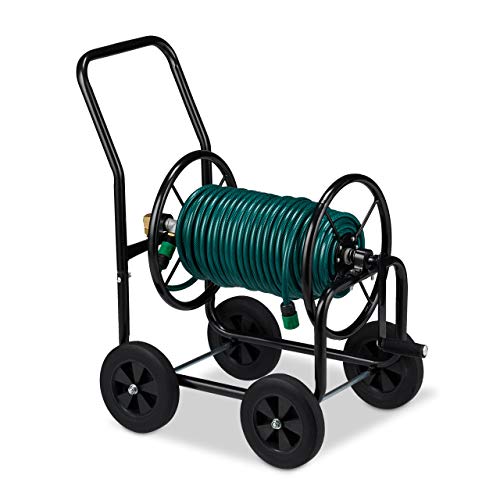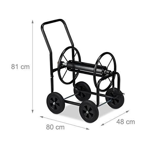 Relaxdays Carrello Avvolgitubo in Metallo, 4 Ruote in Gomma, XL, con Manovella, per Tubi 60 m, HLP 81 x 48 x 80 cm, Nero