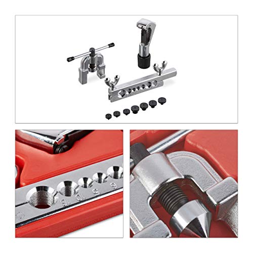 Relaxdays Set Cartellatrice 5-16 mm, con Tagliatubi & Valigetta, per Tubi in Rame & Alluminio, Argento/Nero/Rosso