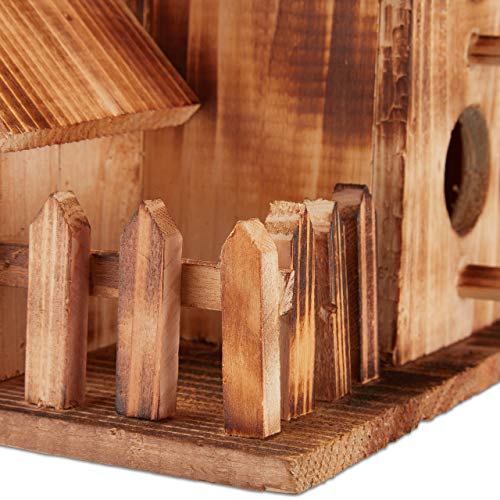 Relaxdays Casetta per Uccelli, da Appendere, Balcone, Terrazza, Giardino, in Legno Bruciato, Nido, 34x20x19 cm, Naturale