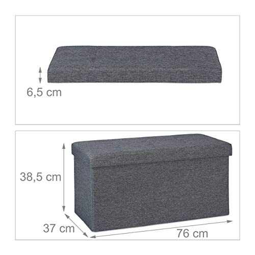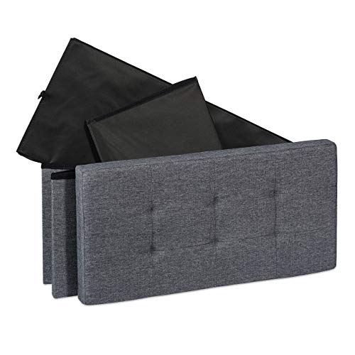 Relaxdays Cassapanca Contenitore, Capiente Panca Imbottita, Pouf Pieghevole con Separatori, 84L, Ingresso, Grigio Scuro, Pannelli MDF, Tessuto, gommapiuma, 38,5 x 76 x 37 cm