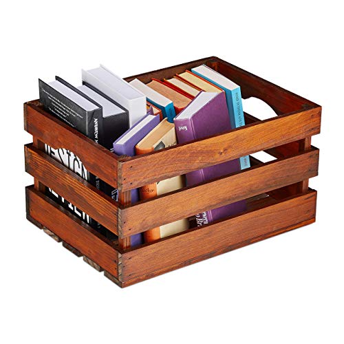 Relaxdays Cassetta in Legno Portafrutta, Cestino Decorativo Aperto, 21x39x29, Cesta Porta Frutta Rustica, Marrone Scuro