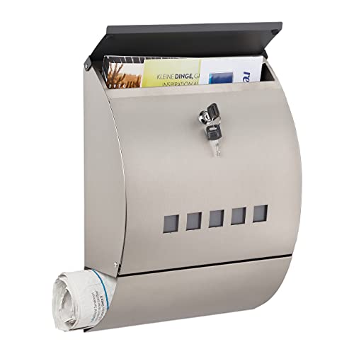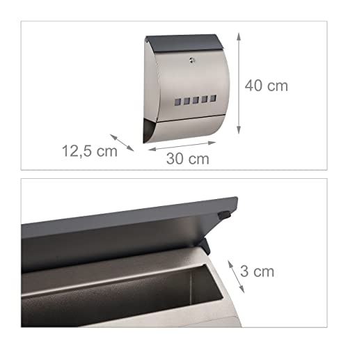 Relaxdays Cassetta della Posta, Acciaio Inox, Buca delle Lettere e Portagiornali, HLP 40x30x12,5 cm, 2 Chiavi, Argentato, Inossidabile