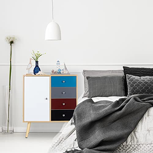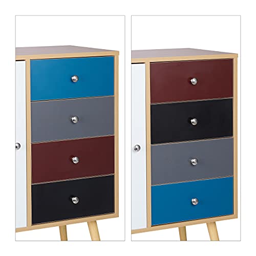 Relaxdays Cassettiera, con 4 Cassetti e Anta, HLP 80x70x40 cm, Stile Scandinavo, Comò Moderno, Legno MDF, Multicolore, ingegnerizzato, 1 pz
