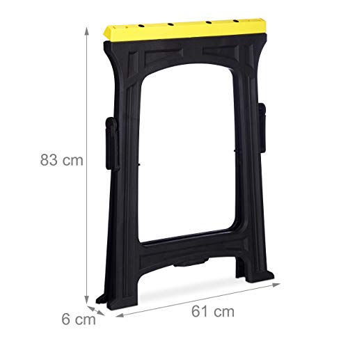 Relaxdays Cavalletti da Lavoro, Set da 2, Max. 170 kg, Stabile, Altezza di Lavoro 79 cm, Salvaspazio, Plastica, Nero