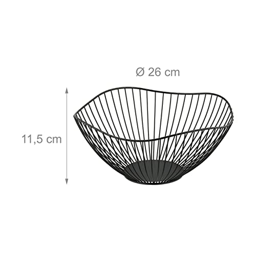 Relaxdays Centrotavola Portafrutta in Metallo, HxD: 11,5 x 26 cm, Cestino Porta Frutta e Verdura, Design Moderno, Nero