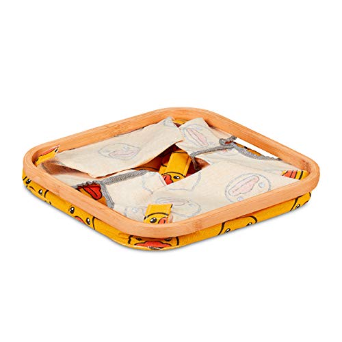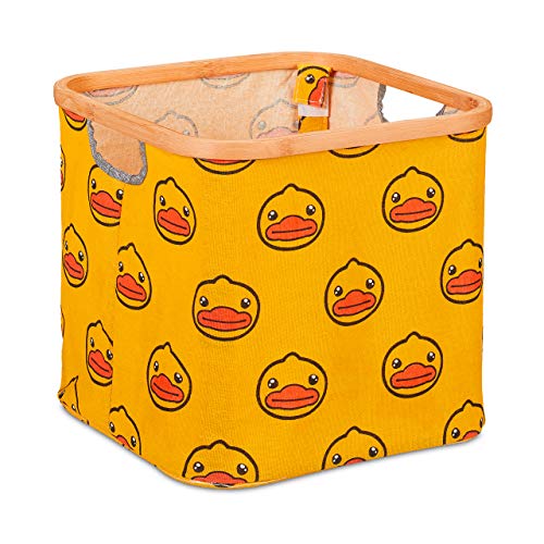 Relaxdays Cesta Giochi Bambini, Contenitori Portaoggetti con Paperelle, Box Pieghevoli Salvaspazio, Stoffa, Giallo, 1 pz