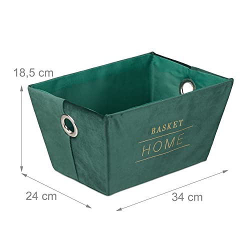 Relaxdays Contenitore Portaoggetti in Velluto, Cestino Salvaspazio con Impugnature per Scaffali & Armadio, Verde Scuro, poliestere, cartone, metallo, 1 pz
