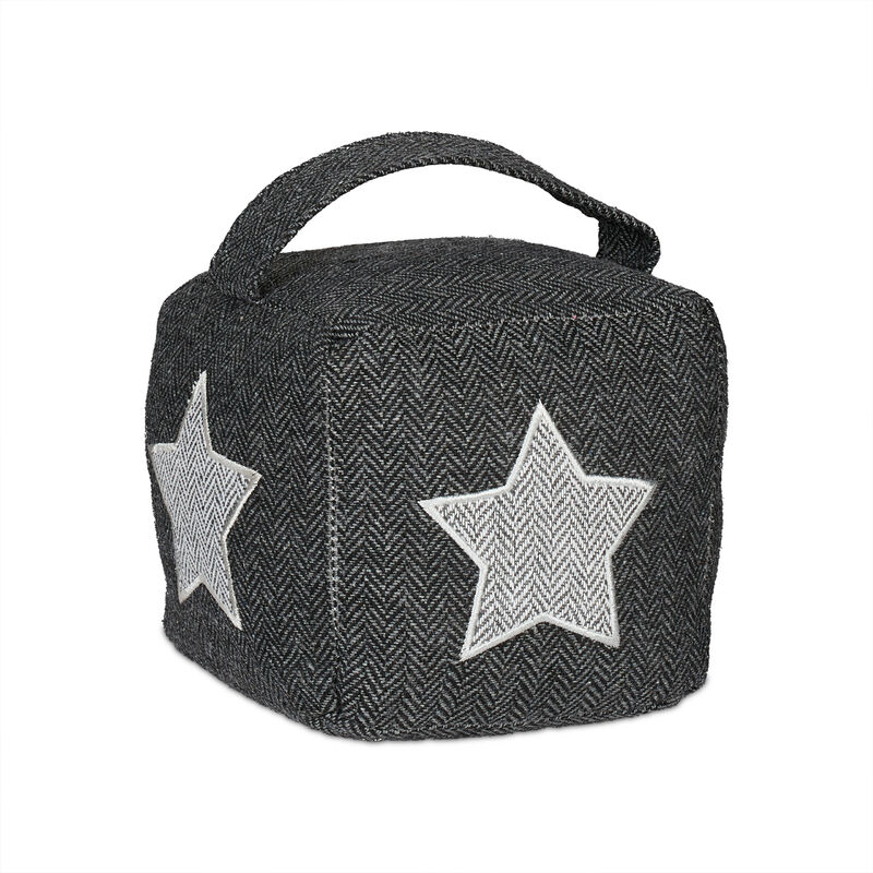 Questo bellissimo fermaporta da pavimento è ideale per evitare che le porte di casa sbattano a causa del vento. Grazie al riempimento di sabbia, si appoggia in modo stabile e sicuro al pavimento. Le dimensioni del door stopper permettono di utilizzarlo anche per porte più alte, come quelle di balconi e terrazze, o alle finestre. Il bloccaporte può essere sollevato e posizionato in modo flessibile grazie alla pratica maniglia in metallo. Il motivo a stella non passa inosservato. Blocca porta da pavimento in dettaglio - Dimensioni totali H x L x P: 18 x 15 x 15 cm ca. - Altezza senza manico: 15 cm ca. - Peso: 1,6 kg ca. - Materiale: poliestere, sabbia - Colore: grigio, bianco Door stopper autoportante - Blocca porte dal design moderno con grande motivo a stella e maniglia - Mantiene porte e finestre aperte - Il morbido materiale superiore protegge la porta e il pavimento dai graffi - Il fermaporta da terra può essere collocato in qualsiasi punto della stanza - Ideale per il bagno, il
