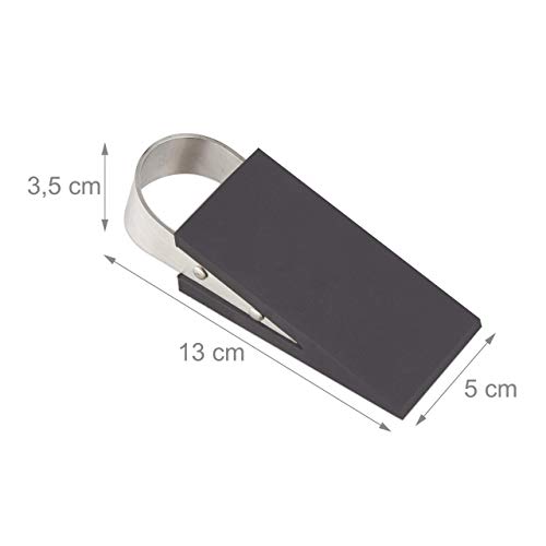 Relaxdays Fermaporte set da 2, Protezione porte da corrente, Manico in acciaio, Gomma antiscivolo, 3,5x13x5 cm, Nero