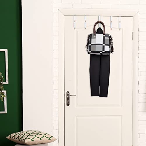 Relaxdays Ganci da Porta, Set 5 Appendini Sopraporta Doppio, Ferro & Legno, Attaccapanni, 16x28x7 cm, Bianco/Naturale