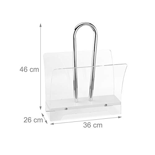 Relaxdays, giornali Portariviste con Impugnature, per Giornali & Magazine, Design Moderno, HxL 46x36 cm ca, Acrilico, Trasparente, Pannelli MDF, Metallo, 1 pz