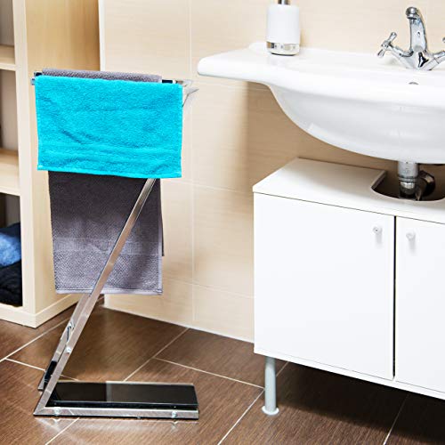 Relaxdays Glass Portasciugamano da Terra, 2 Barre Porta Asciugamani, Acciaio, Argento, 35x13.5x78 cm