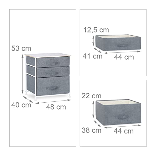 Relaxdays 53 x 48 x 40 cm, Grigio 10023328_491 Mobiletto con 3 Cassetti, Mobile Cassettiera, HxLxP, Tessuto, Metallo, Legno