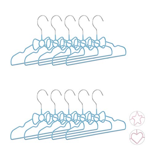 Relaxdays Set da 10 Grucce per Bambini con Fiocco, Decorate, Salvaspazio, Appendini, Stampelle, 30 cm, Ferro, Celeste