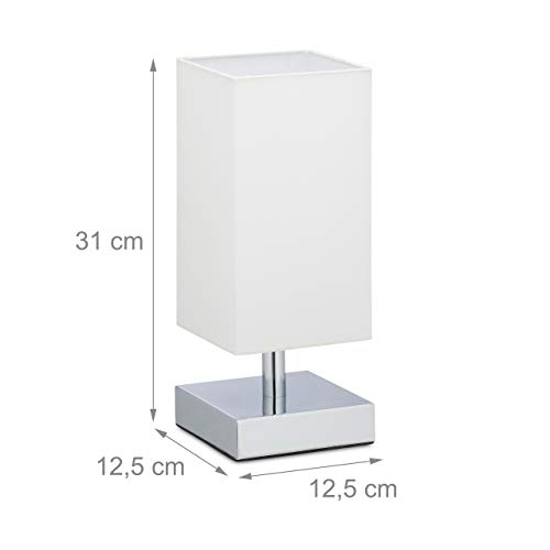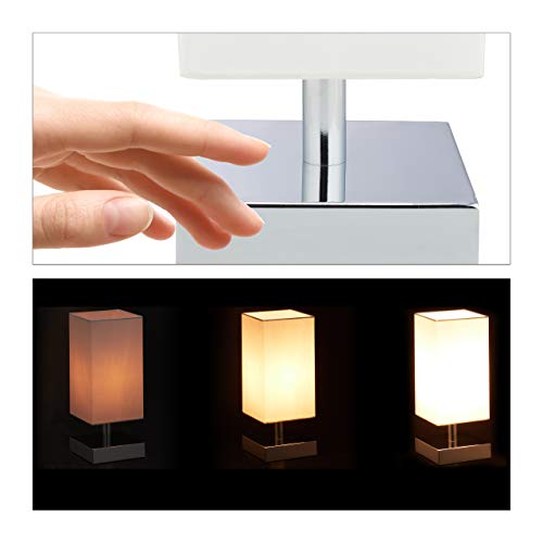 Relaxdays Lampada da Comodino, con Funzione Touch, 3 Livelli di Intensità, E14, HLP 31 x 12,5 x 12,5 cm, Argento/Crema