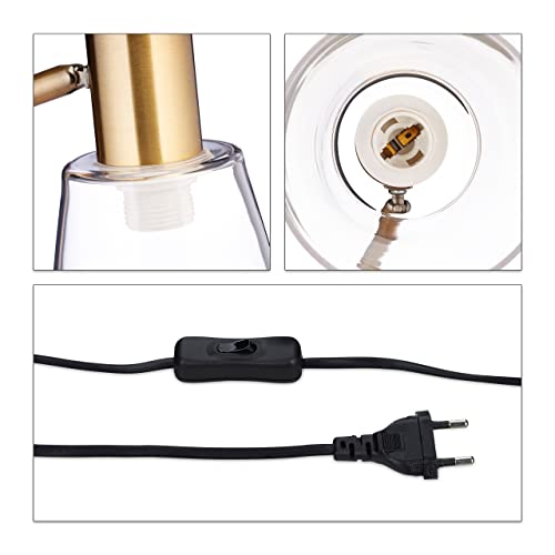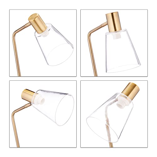 Relaxdays Lampada da Scrivania, Regolabile con Paralume in Vetro Luce da Tavolo E27, 40 W, Acciaio HLP 52,5x13x30cm, Oro