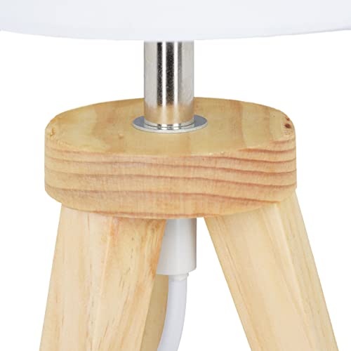 Relaxdays Lampada da Tavolo con Treppiede in Legno, Abat-Jour in Tessuto, Design Scandinavo, HD 31x14cm, Bianco/Naturale