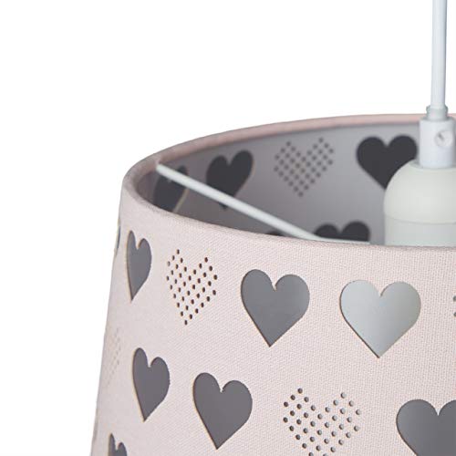 Relaxdays Lampadario per la Cameretta, Lampada da Soffitto per Bambine, Paralume con Cuori, HxD 126 x 27 cm, Rosa/Bianco, 1 pz