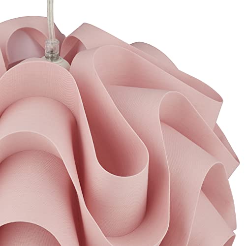 Relaxdays Lampadario a Sospensione, 137x34cm, Lampada da Soffitto, Salotto e Camera, Attacco E27, Stoffa a Pieghe, Rosa