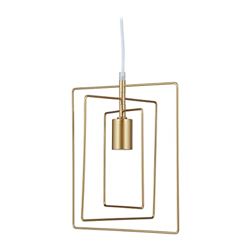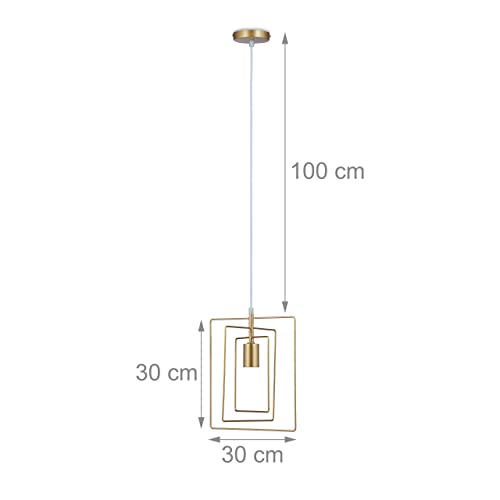 Relaxdays Lampadario a Sospensione Moderno, HLP 32x32x28 cm, da Soffitto, per Salotto e Camera, Lampadina E27, Dorato, 1 pz