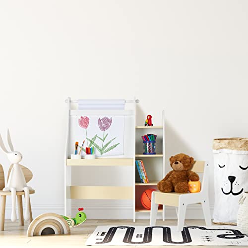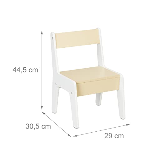 Relaxdays Lavagnetta per Bambini con Sedia, Scomparti e Rotolo di Carta da Disegno, HLP 90 x 72 x 30 cm, Bianco Beige