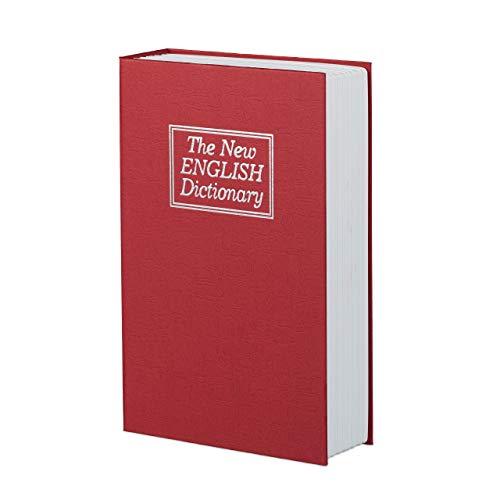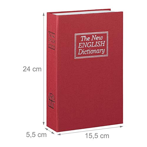 Relaxdays Libro Cassaforte, Cassetta Sicurezza, Rivestita in Acciaio, 2 Chiavi, Dizionario, 24x15,5x5,5 cm, Rosso, Metallo, 5.5x15.5x24 cm