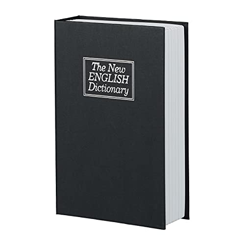Relaxdays Libro Cassaforte, Cassetta Sicurezza, Rivestita in Acciaio, 2 Chiavi, Dizionario, 24x15,5x5,5 cm, Nero, Metallo, 5.5x15.5x24 cm