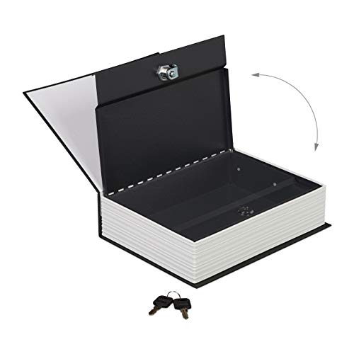 Relaxdays Libro Cassaforte con Serratura, Cassetta di Sicurezza, Acciaio, 2 Chiavi, HxLxP: 27x20x6,5 cm, Nero