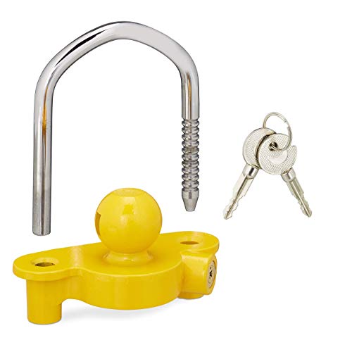 Relaxdays Lucchetto rimorchio, Antifurto per Gancio Traino, 2 Chiavi, Resistente & Robusto di Massima Sicurezza, Giallo