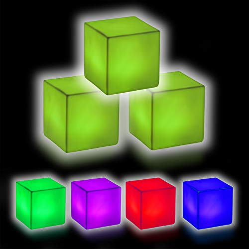 Relaxdays Luci a LED da Atmosfera a Forma di Cubo, Set da 3, Decorative, con Cambio di Colore, Senza Cavo, HxLxP: 6,5 x 6,5 x 6,5 cm, Bianche