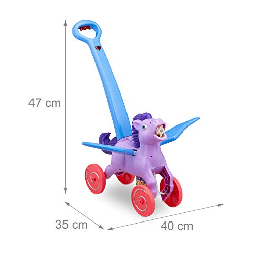 Relaxdays- Macchina Sparabolle di Sapone a LED Pegasus, 2 Contenitori di Liquido Bolle, Cavallo, Elettrico, Lilla, Colore, 10024933