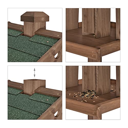 Relaxdays Mangiatoia per Uccelli, Treppiede, Tetto Resistente, Silo, per Giardino, Legno, HPL137x68x55 cm, Marrone/Verde, 1 pz