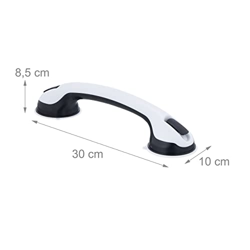 Relaxdays Maniglia con Ventosa, Supporto Vasca e Doccia da Bagno, per 70 kg, Ausilio Anziani e Disabili, Bianco Nero