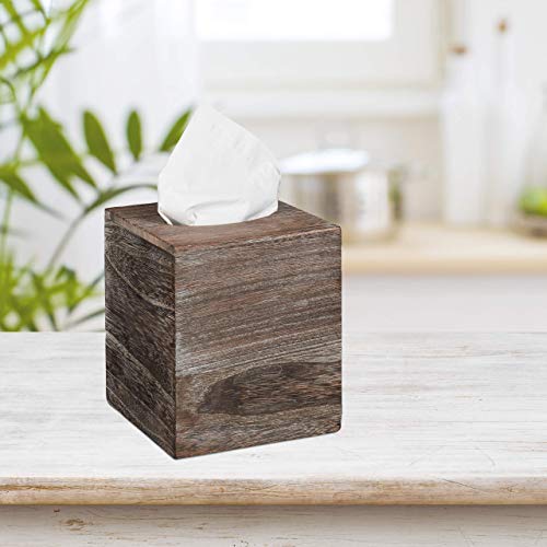 Relaxdays, Marrone Porta Fazzoletti a Dado, Shabby Chic, Base Scorrevole, per Salviettine, Quadrato, HLP 16,5x14x14 cm, Legno, 16.5 x 14 x 14 cm