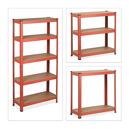 Relaxdays Metallo Scaffale con Sistema a Incastro, Fino a 875 kg, Scaffalatura ad Alta Portata 5 Ripiani, 151x75x30 cm, Rosso, Legno ingegnerizzato