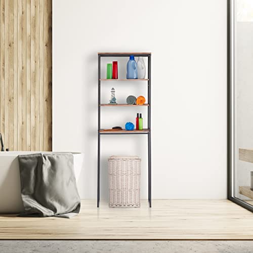 Relaxdays Mobile per Lavatrice e Asciugatrice, Metallo, Stile Industrial, 4 Ripiani Bagno, 175,5x60x24 cm, Nero Marrone, Fibra di Legno 50% Acciaio, 1 pz