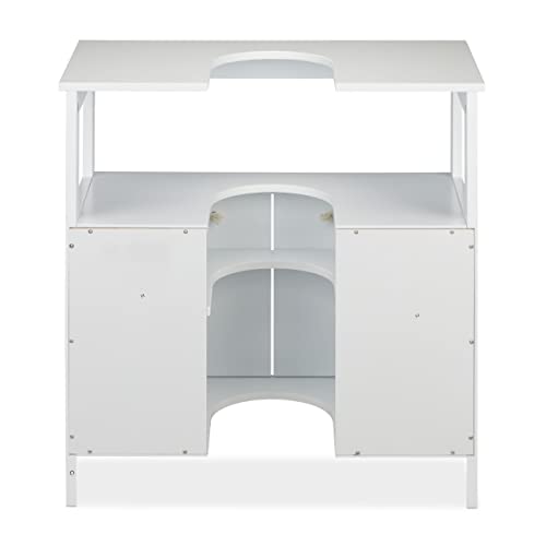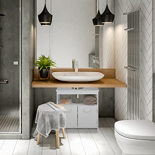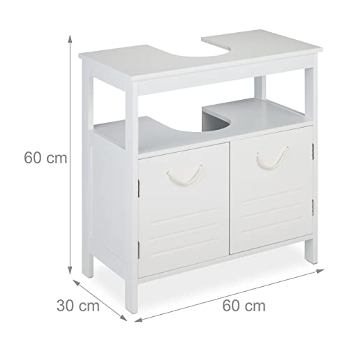 Relaxdays Mobile Sottolavabo Copricolonna, da Bagno, 2 Scomparti, HLP: 60 x 60 x 30 cm, Armadietto Copri Sifone, Bianco, 90% Legno 10% Fibra vegetale