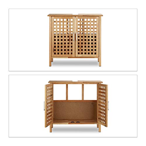 Relaxdays Mobile Sottolavabo in Legno di Noce Resistente, Armadietto da Bagno, HxLxP: 61 x 66 x 29 cm ca, Naturale