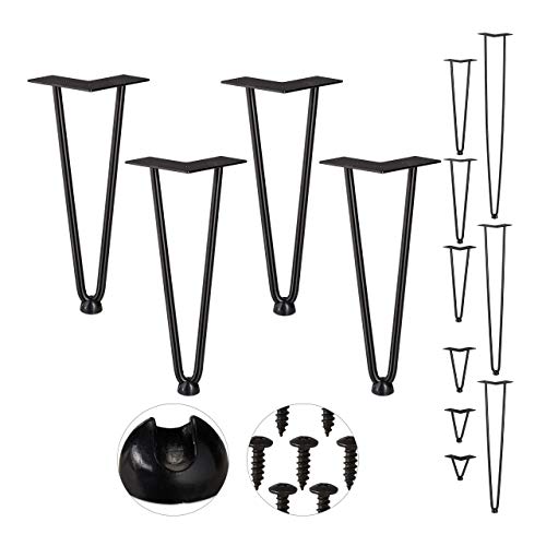 Relaxdays, Nero Gambe, 2 Aste, Metallo, Piedi Mobili a Forcella per Sgabello Tavolo Armadio H: 30 cm, Acciaio, Gomma, Set da 4 pz