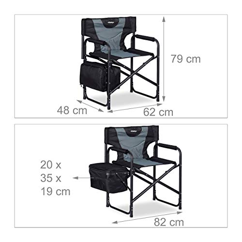 Relaxdays, Nero-Grigio Sedia Regista, Pieghevole e da Campeggio, Borsa Termica, da Giardino, Festival & Pesca, 110 kg, acciaio