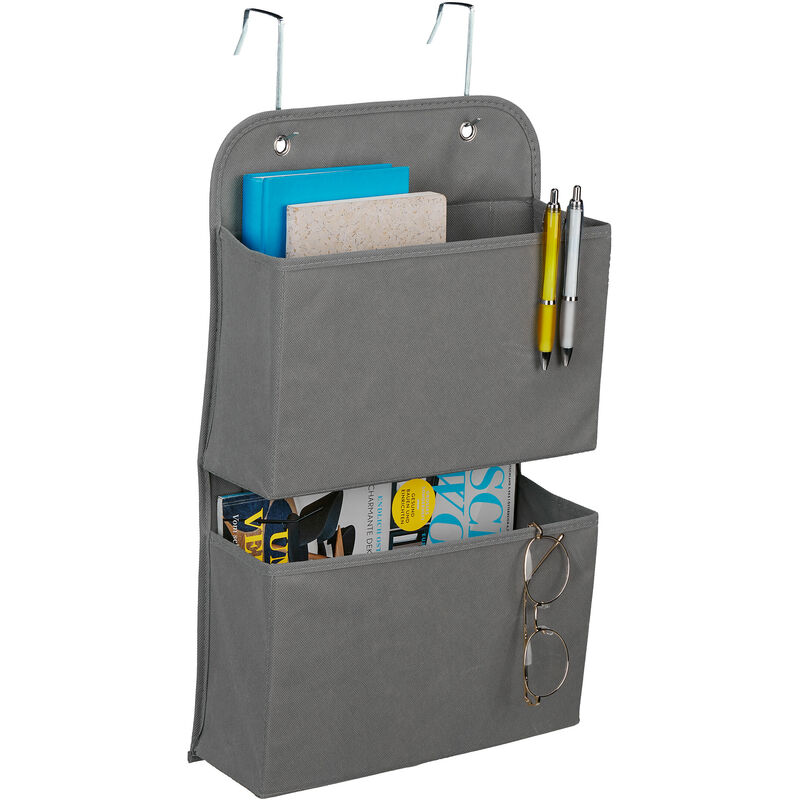 Basta disordine! Con questo organizer da parete in tessuto non tessuto, ogni cosa troverà il suo posto. I 2 scomparti offrono tanto spazio per riviste, documenti, asciugamani oanche sciarpe e berretti. Il portaoggetti pensile può essere appeso ad una porta utilizzando i ganci o montato alla parete tramite gli occhielli. In caso di non utilizzo, l'organizer può essere comodamente piegato in maniera salvaspazio. Organizer da parete in dettaglio - Dimensioni totali H x L x P: 50 x 31 x 10 cm ca. - Dimensioni interne scomparti H x L x P: 18 x 30 x 9 cm ca - Per porte con spessore max.: 3,5 cm ca. - Carico massimo perscomparto: 1 kg ca. - Peso: 300 g ca. - Materiale: tessuto non tessuto, cartone - Colore: grigio Tasca porta accessori per il bagno,il corridoio ecc. - Con 2 scomparti spaziosi per riviste, utensili ecc. - Da appendere alla porta con i ganci inclusi nella confezione - In alternativa, èpossibile montare l'organizer alla parete grazie agli occhielli - Il design ingrigio si