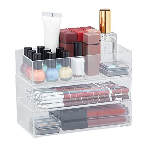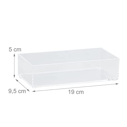 Relaxdays 4x Organizer Portaoggetti da Cassetto, Scrivania Ufficio, Cucina o Bagno, Box Trucchi, 5x19x9,5 cm, Trasparente