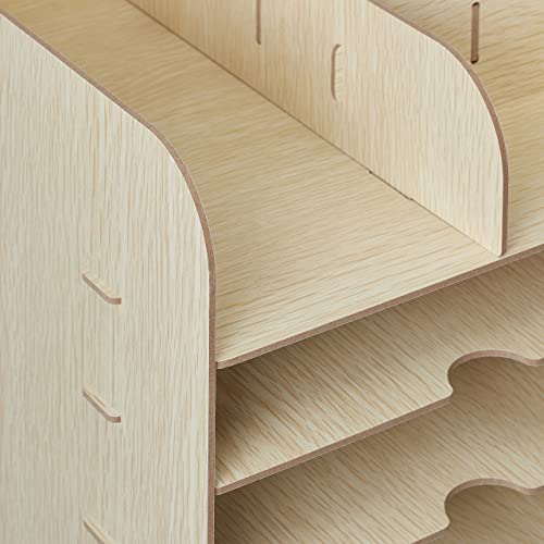 Relaxdays Organizer da Scrivania, Portapenne e Portadocumenti, 12 Scomparti, HLP: 34,5x25x32 cm, in MDF, Marrone Chiaro