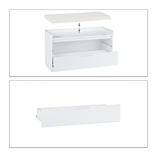 Relaxdays Panca Appendiabiti con 2 cassetti, Stile Rustico, Cuscino per sedersi, Altezza 45 x 80 x 36 cm, Bianco Mobiletto, Pannelli MDF, Poliestere, 45,00 x 80,00 x 36,00cm