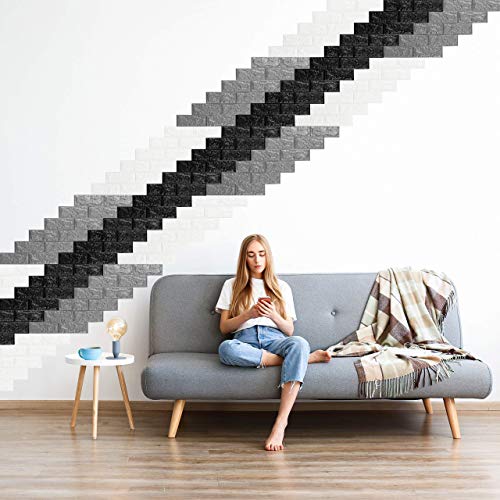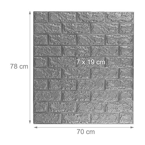 Relaxdays Pannelli da Parete Autoadesivi, 3D, Set da 5, Effetto Pietra, Decorativi, in PE-Gommapiuma, 78x70 cm, Grigio
