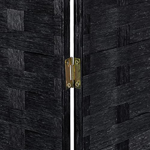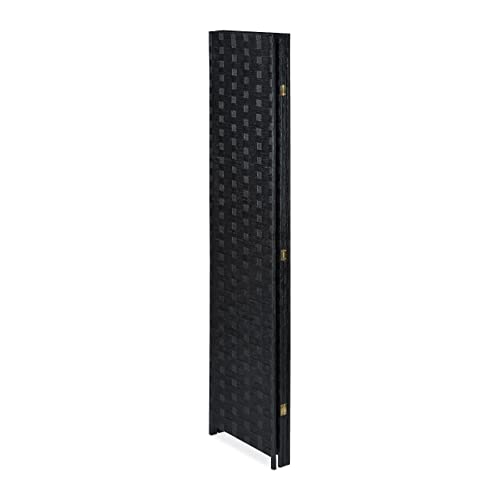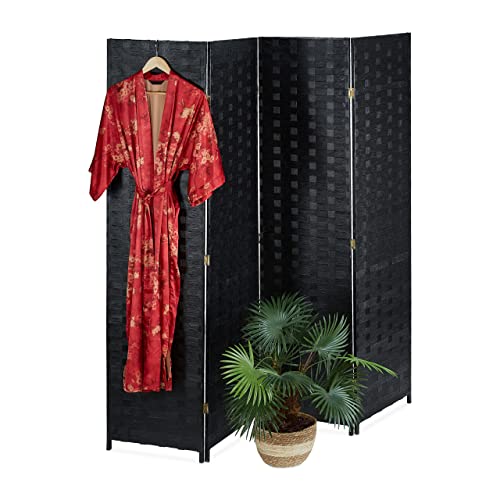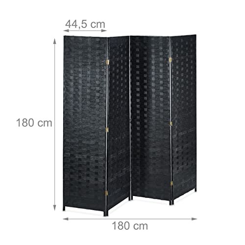 Relaxdays Paravento a 4 Pannelli, Divisore Pieghevole, HxL180x180 cm, Legno, Corda di Carta, Separé per Interni, Nero, 70% 30%