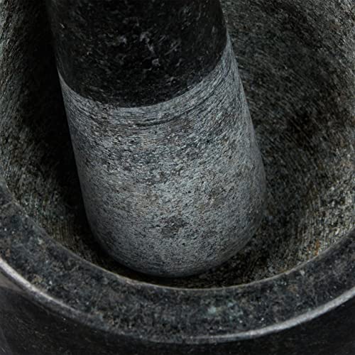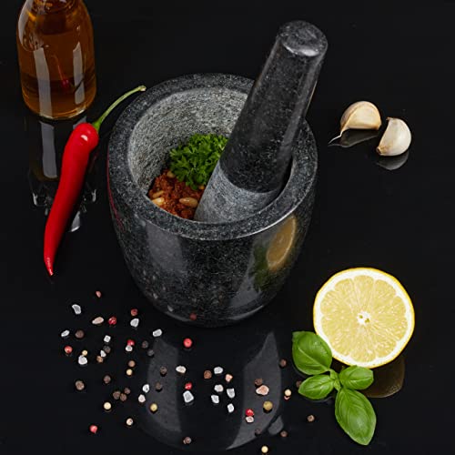 Relaxdays Pestello, Robusto Mortaio & Pestello in Granito, Robusto & Resistente, Erbe Aromatiche, in Pietra Lucida, V 500ml, Ø 13, Nero