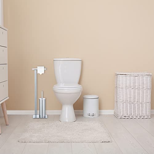 Relaxdays Piantana Portarotolo e Scopino, Set Bagno Porta Rotolo Carta Igienica, Portascopino, HLP: 72x20x17 cm, Argento, 90% Acciaio, 1 pz